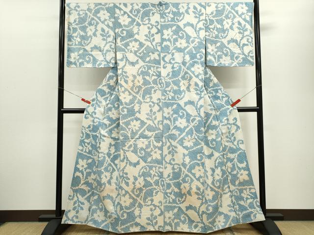Heiwaya Kimono ■ High-quality Komon (small patterned kimono) with Shibori (tie-dyeing) floral arabesque pattern, made of pure silk, a masterpiece CABF3182ze