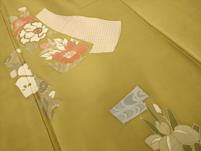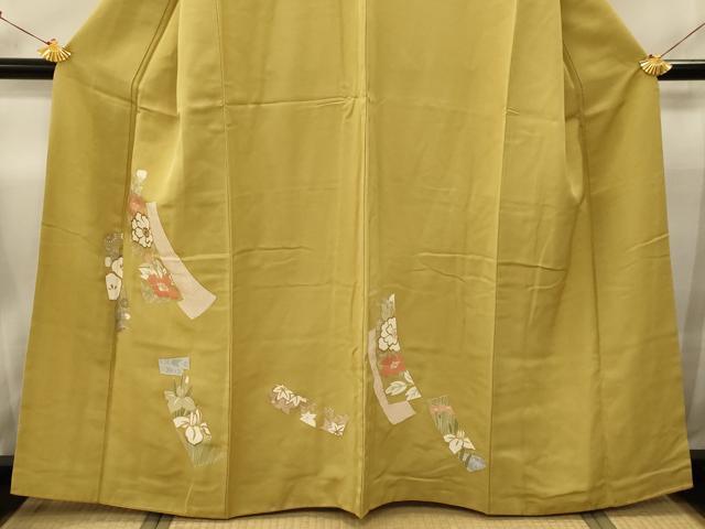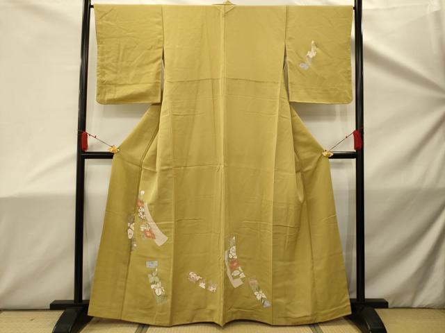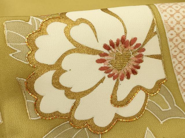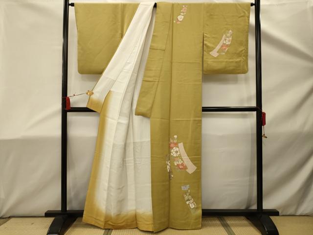 Heiwaya Kimono ■ Houmongi Kimono (Visiting Kimono) with Koma Embroidery, Flower and Tanzaku Design, Gold-Lit, Pure Silk, Excellent Item AABD5389sx
