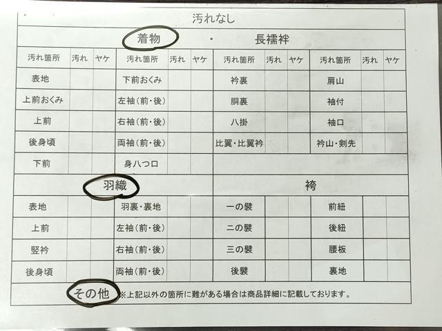 着物の状態をより分かりやすくお伝えするために、汚れチェックシートの英訳版を作成致しました。以下のリンクよりご覧ください。