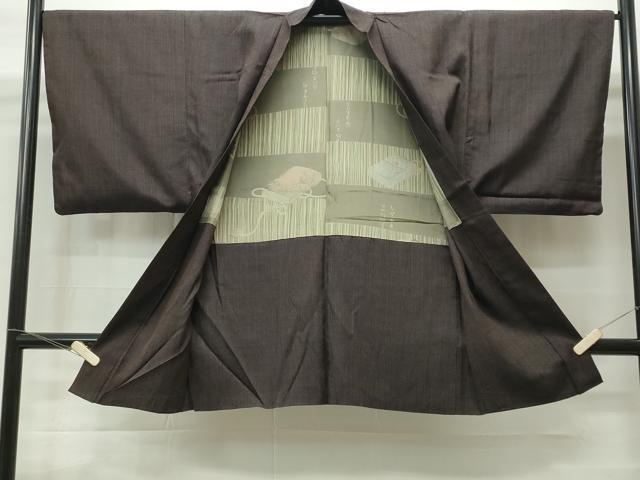 Heiwaya Kimono ■ Men's Tsumugi Ensemble Checkered Pattern Pure Silk Excellent Product CAAM2560ku