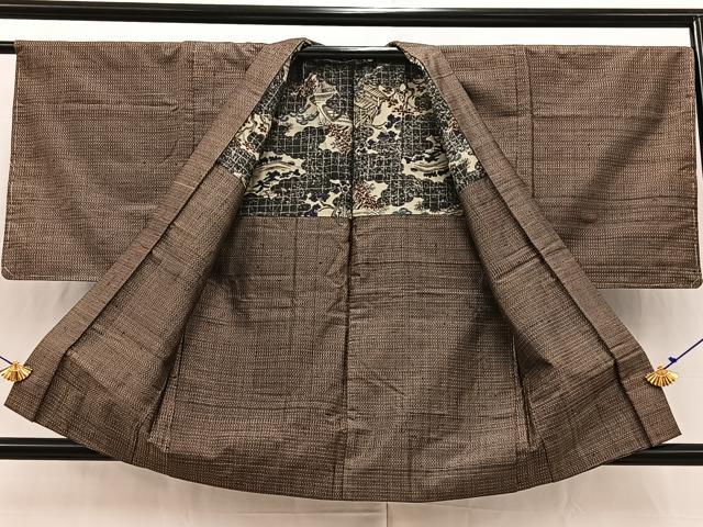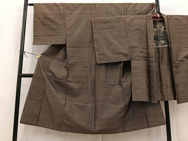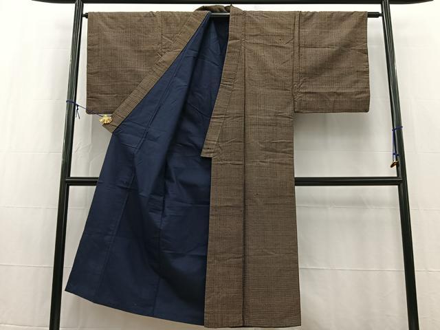 Heiwaya Kimono ■ Men's Tsumugi Ensemble, Checkered Pattern, Pure Silk, Excellent Quality, BAAW8375yc