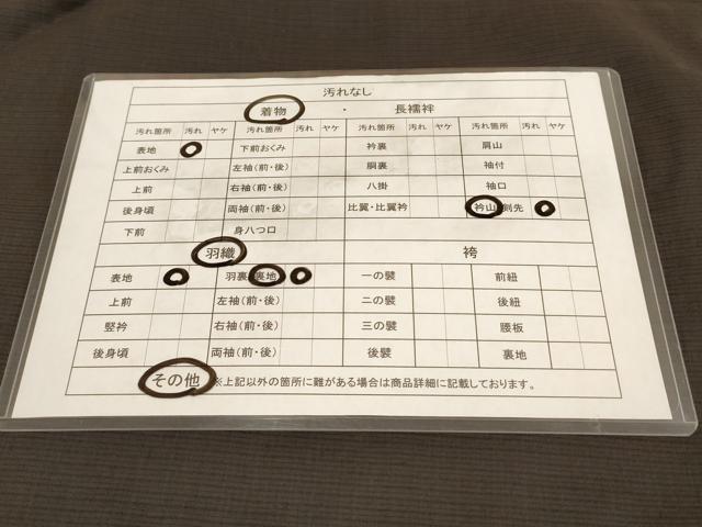 着物の状態をより分かりやすくお伝えするために、汚れチェックシートの英訳版を作成致しました。