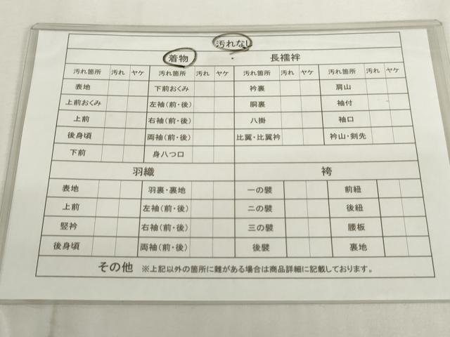 着物の状態をより分かりやすくお伝えするために、汚れチェックシートの英訳版を作成致しました。以下のリンクよりご覧ください。