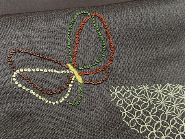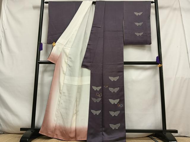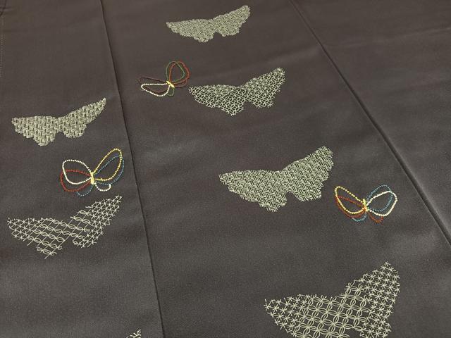 Heiwaya Kimono ■ One of the Three Great Chinese Embroideries, Sagara Embroidery, Visiting Kimono with Dancing Butterfly Pattern, Pure Silk, Excellent Item AABD9200oa