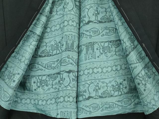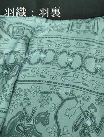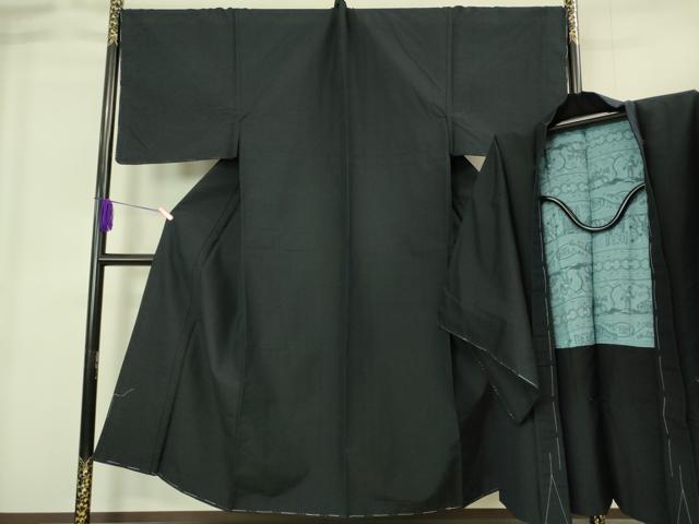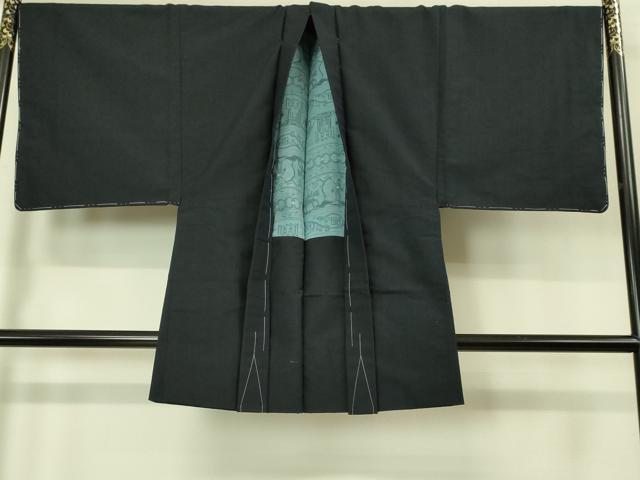 Heiwaya Kimono ■ Premium Men's Tsumugi Ensemble King Size Long Haori Coat Black with Mural Pattern on Lining, Excellent Condition, Unused, DZAB1901kh6