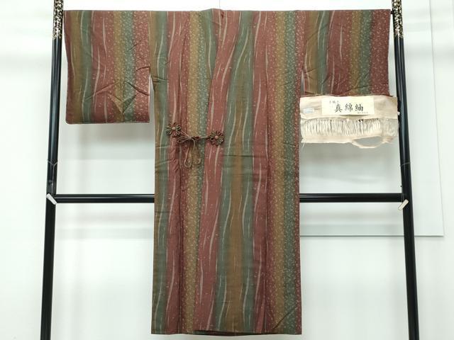 Heiwaya Kimono ■ Premium Travel Kimono, Long Length, Silk Pongee, Handwoven, Variegated Stripes, Certificate of Authenticity Included, Excellent Condition, Unused, CZAA3510s5