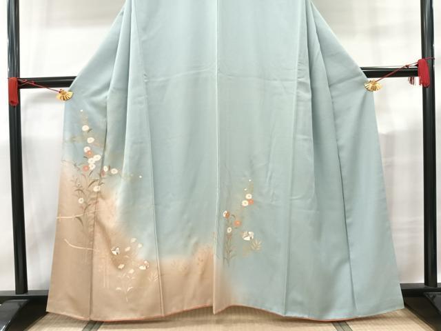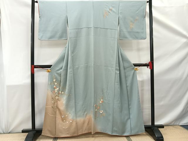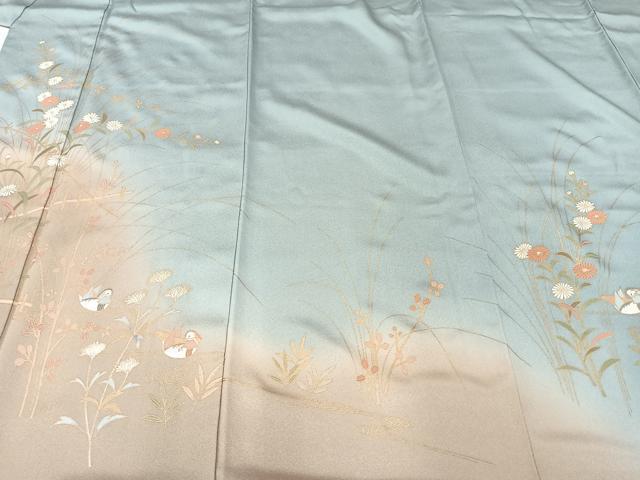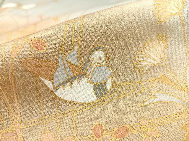 Heiwaya Kimono ■ Visiting Kimono, Mandarin Duck and Flower Design, Gradient Dye, Gold Accents, Pure Silk, Excellent Quality, AABC8623uw