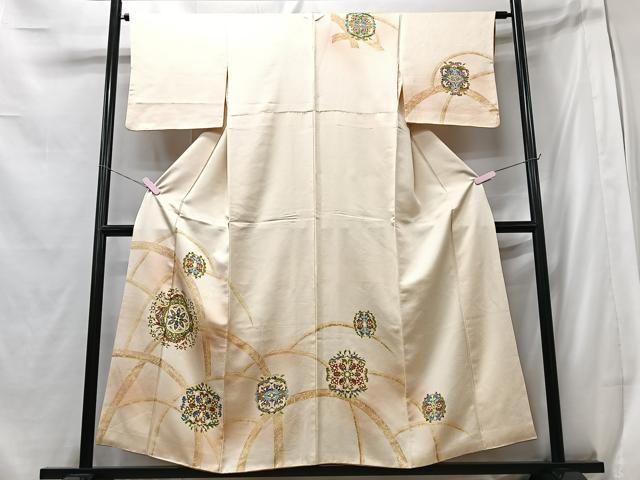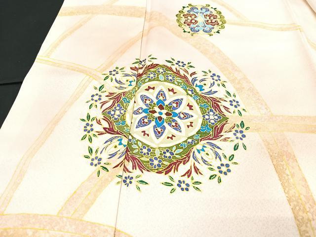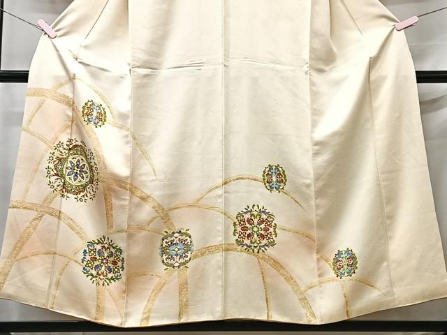 Heiwaya Kimono ■ Visiting Kimono, Shosoin Flower Design, Gold-Lit, Pure Silk, Excellent Quality, CABB2978xe