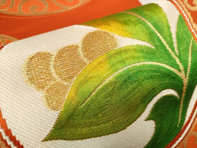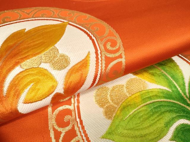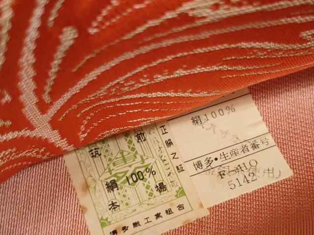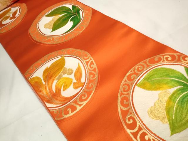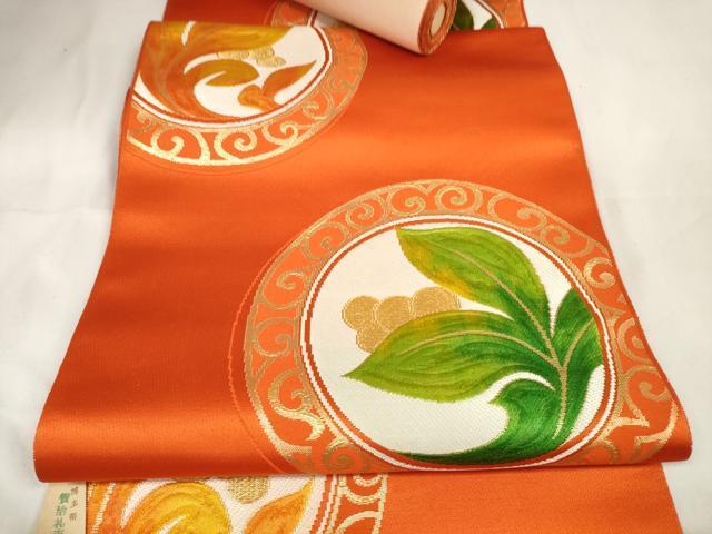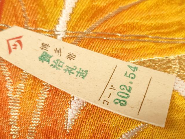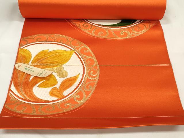 Heiwaya Kimono ▼ Authentic Chikuzen Hakata-ori Nagoya Obi (Sash) with Flower Circle Pattern and Gold Thread, Certificate of Authenticity, Excellent Condition, Unused, DAAW7978zzz