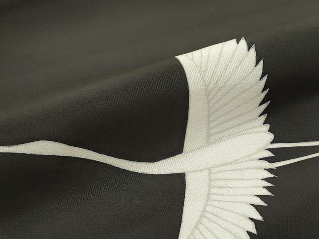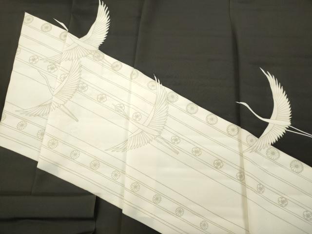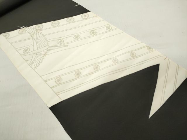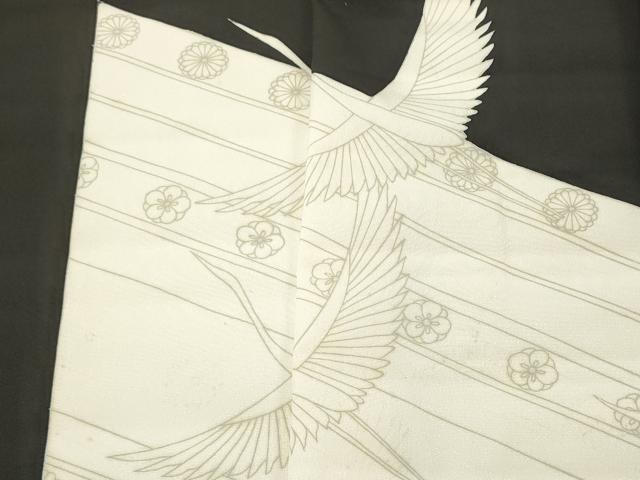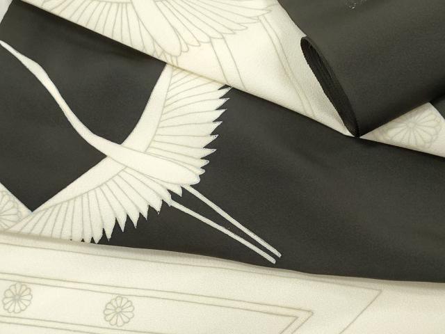 Heiwaya Kimono ▼ Black Tomesode Fabric Roll, Kimono Fabric, Colored Front, Flying Crane and Diagonal Flower Pattern, Excellent Quality, Unused, DABC7475we