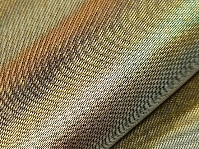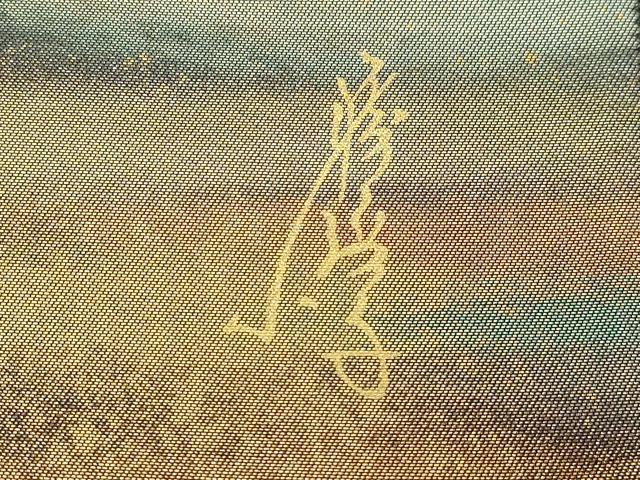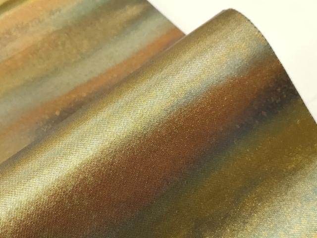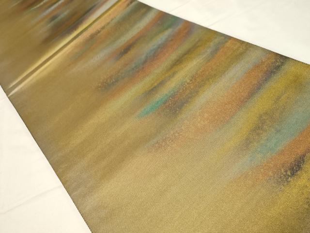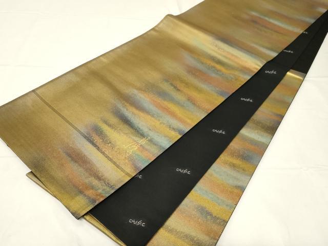 Heiwaya Kimono ▼ Fashion Designer Ayako Koshino - Six-Piece Pattern Obi with Haze Design, Gold and Silver Colors, and Dried Leaf, Pure Silk, Excellent Item, CABA2022dy