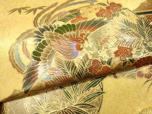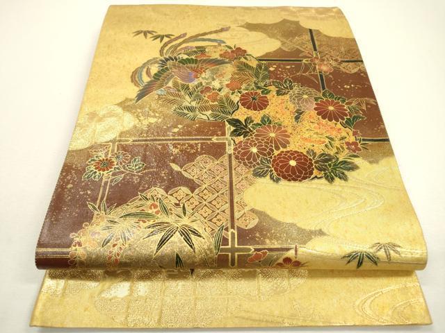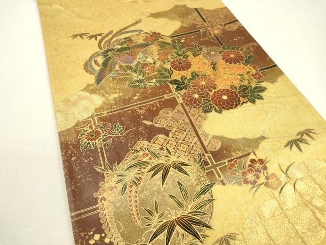 Heiwaya Kimono ▼ Lacquer artist Kanamori Kazuhiro, six-pass pattern obi with mother-of-pearl inlay, phoenix and floral circle design, gold leaf, pure silk, exquisite item DAAX9654fe