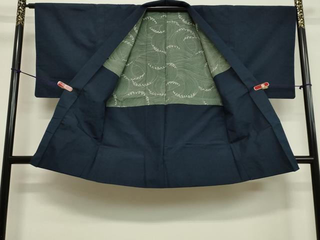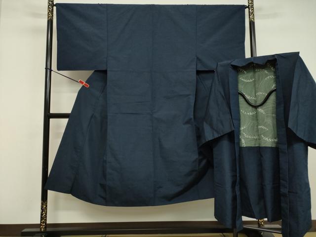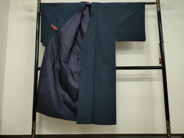 Heiwaya Kimono ▼ Men's Tsumugi Ensemble, Indigo Blue, Pure Silk, Excellent Quality, DAAV1249tw