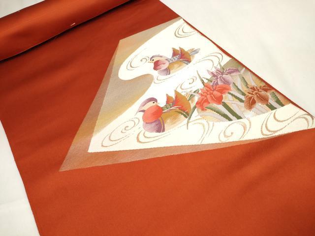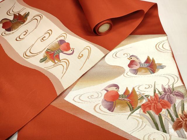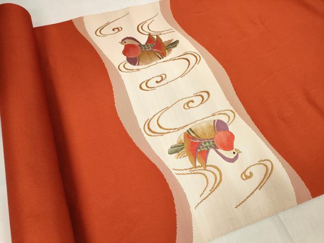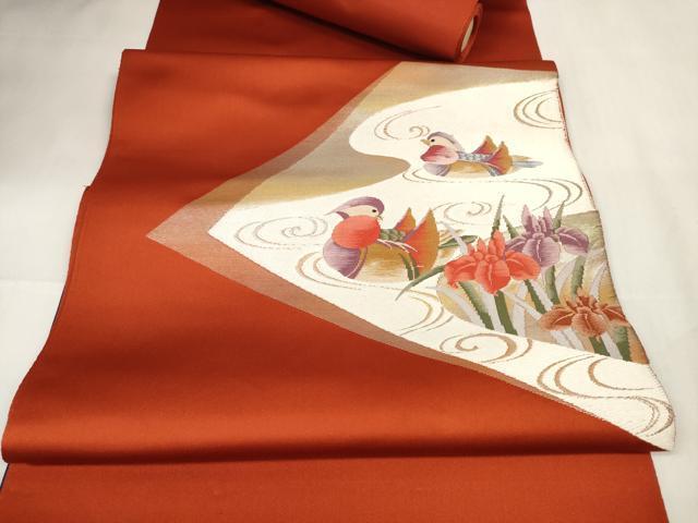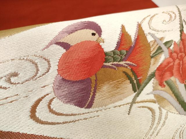 Heiwaya Kimono ▼ Nagoya Obi, Obi Fabric, Unpainted Weave, Flowing Water and Mandarin Duck Flower Design, Gold Thread, Excellent Condition, Unused, DAAW7982zzz