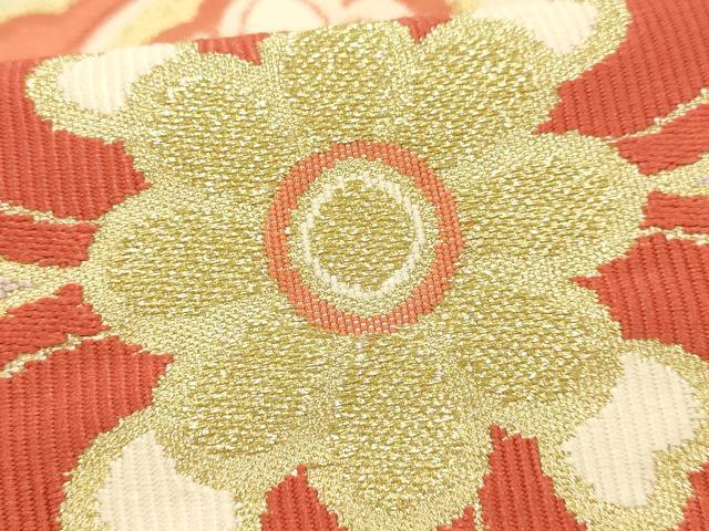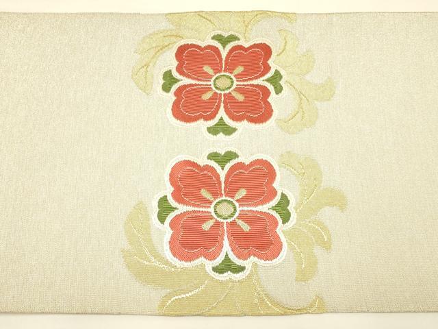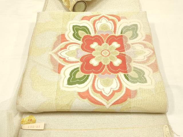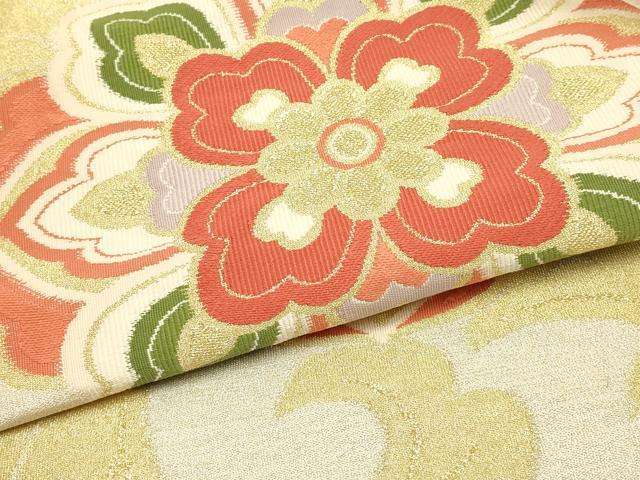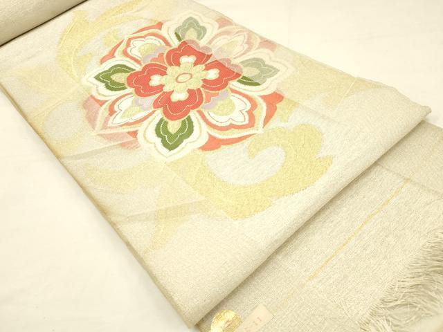 Heiwaya Kimono ▼ Nagoya Obi (Sash) - Bolt, Floral Pattern, Gold Thread, Pure Silk, Excellent Condition, Unused, AAAZ9903ay