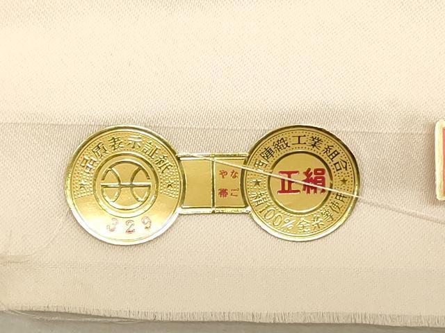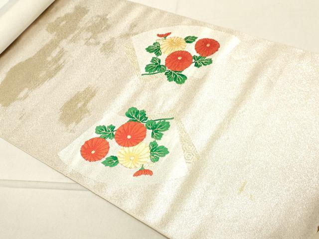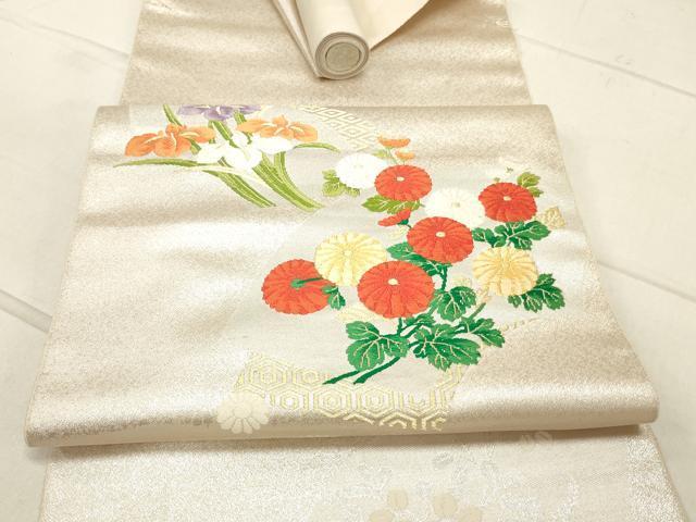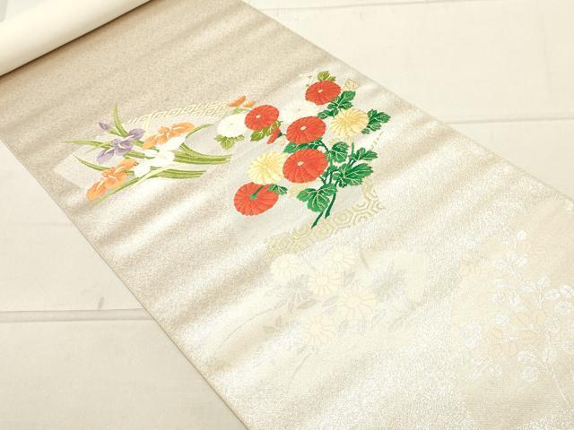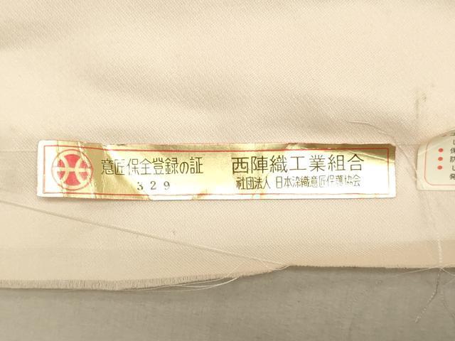 Heiwaya Kimono ▼ Nishijin Nagoya Obi (Sash), Karaori Weave, Ground Paper with Auspicious Flower Design, Gold and Silver Thread, Certificate of Authenticity, Excellent Condition, Unused, DAAX6634zy