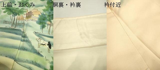 状態は接写画像のように上前・おくみ・胴裏・衿裏・衿付近に薄い汚れがございますが
