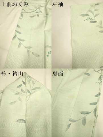 状態は接写画像のように上前おくみ・左袖・衿・衿山・裏面に薄い汚れがございますが
