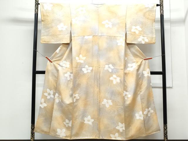 Heiwaya Kimono ▼High-quality Komon (small pattern) with hand-painted flowing water and dancing flower motifs, gradation dyeing, pure silk, exquisite item, CABA8724th