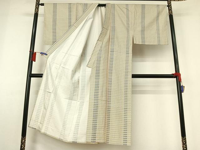 Heiwaya Kimono ▽ Men's Komon (small patterned kimono), unlined, Tsumugi silk, checkered pattern, pure silk, excellent quality, AABH8610jh
