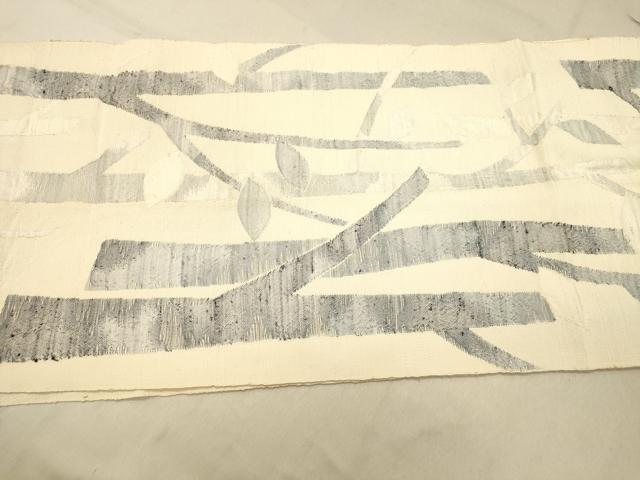 Heiwaya Kimono ◎ 8-inch Nagoya Obi (Sash), Tsumugi Fabric, Branch and Leaf Pattern, Pure Silk, Excellent Quality, DABA2003jm