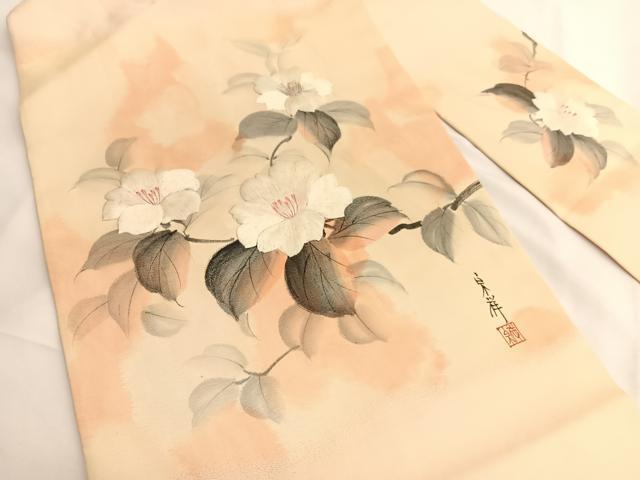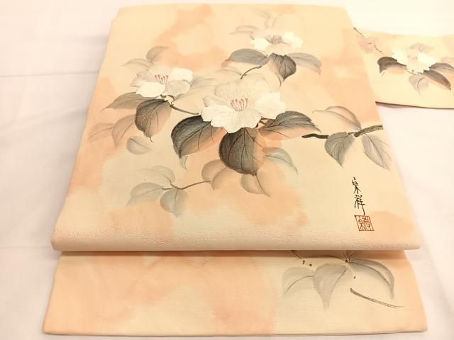 Heiwaya Kimono ◎ 9-inch Nagoya Obi, Artist-made, Hand-painted Embroidery, Branch and Flower Pattern, Pure Silk, Excellent Item BAAV8991hv