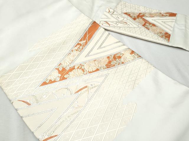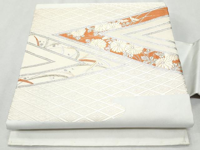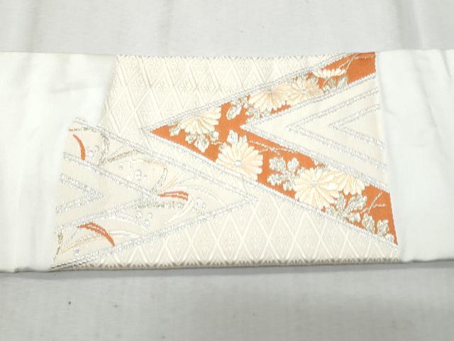 Heiwaya Kimono ◎ 9-inch Nagoya Obi (Sash), Karaori, Auspicious Floral Design, Gold and Silver Thread, Pure Silk, Excellent Quality, CABA2512fb
