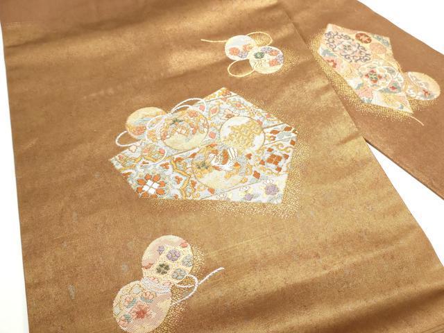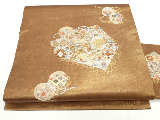 Heiwaya Kimono ◎ 9-inch Nagoya Obi (Sash) - Karaori (Chinese Weave) - Phoenix and Flower Design - Gold and Silver Threads - Drawn Leaf - Pure Silk - Excellent Item - CAAY7468th