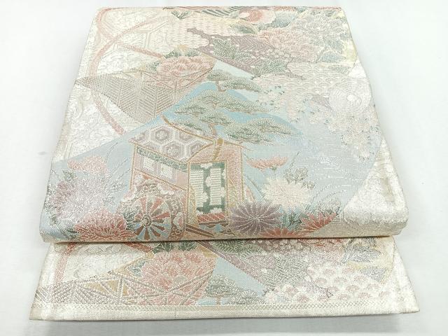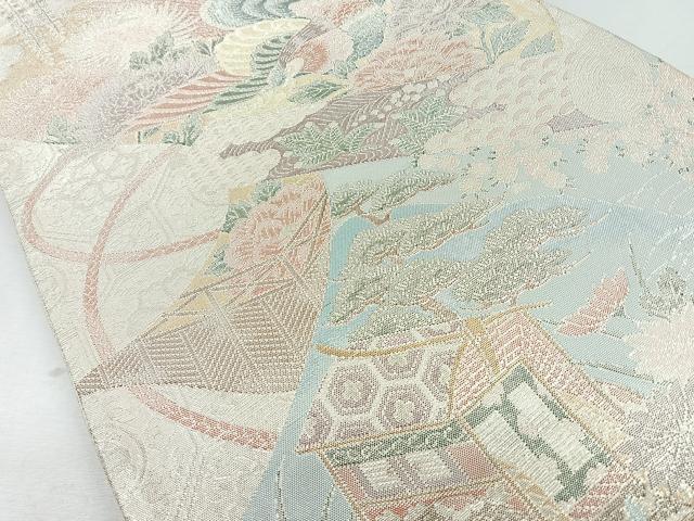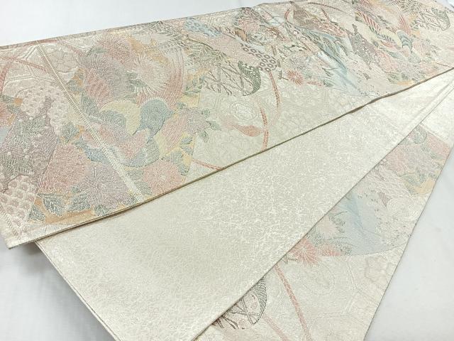 Heiwaya Kimono ◎ 900mm Weave Special Saga Nishiki Six-Piece Pattern Obi with Auspicious Flower and Bird Design, Gold and Silver Thread, Pure Silk, Excellent Quality CAAZ7542nb