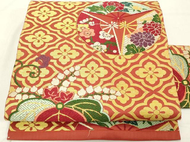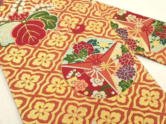 Heiwaya Kimono ◎ Antique Taisho Romantic 9-inch Nagoya Obi (Sash), Karaori Weave, Auspicious Floral Design, Gold Accents, Pure Silk, Excellent Item, DAAZ8139cd