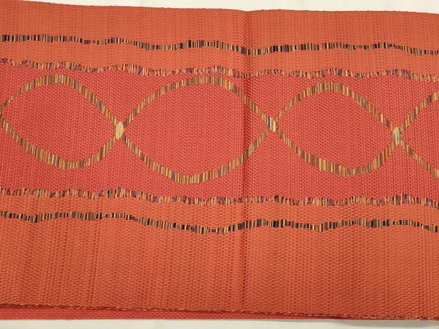 仏具のひとつである独鈷、華皿を基にした幾何学模様が織られています。