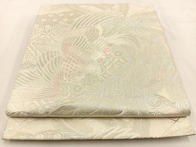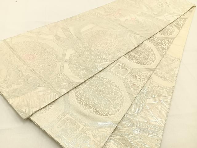 Heiwaya Kimono ◎ Double-sided six-pass pattern obi, Chinese weave, Phoenix, Shosoin, silver thread, pure silk, exquisite item BAAW0096hj