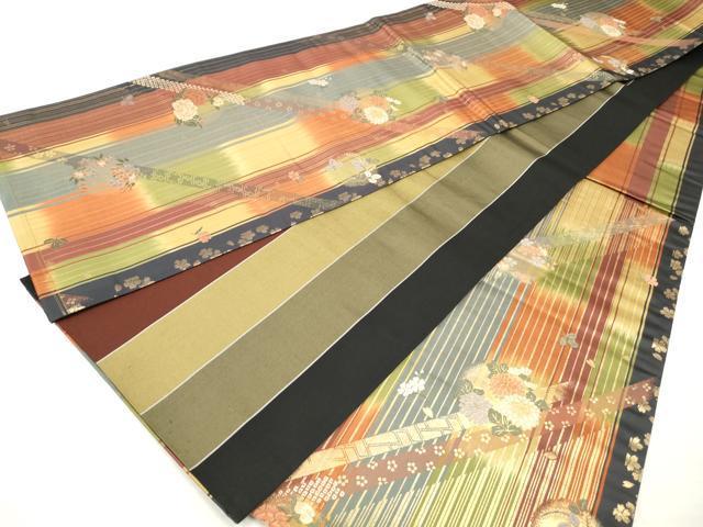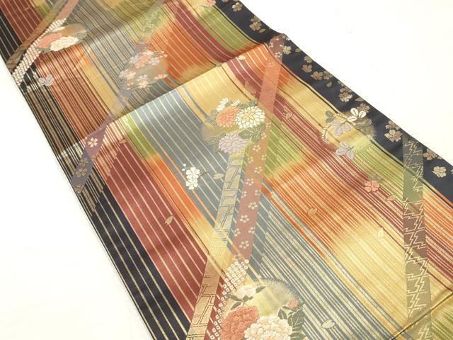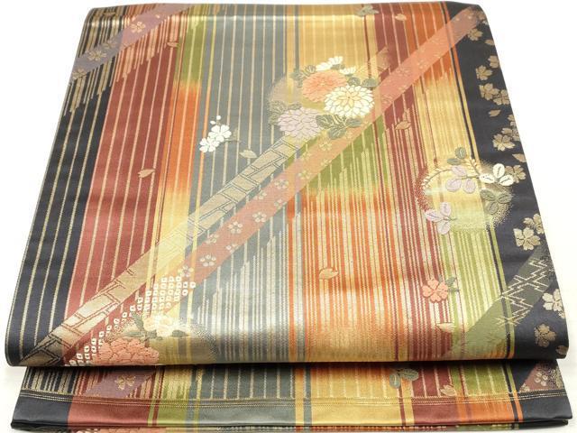 Heiwaya Kimono ◎ Double-sided six-pass pattern obi, Karaori, Hanamaru Mado, gold thread, with hem, pure silk, excellent quality, DABA3141qa