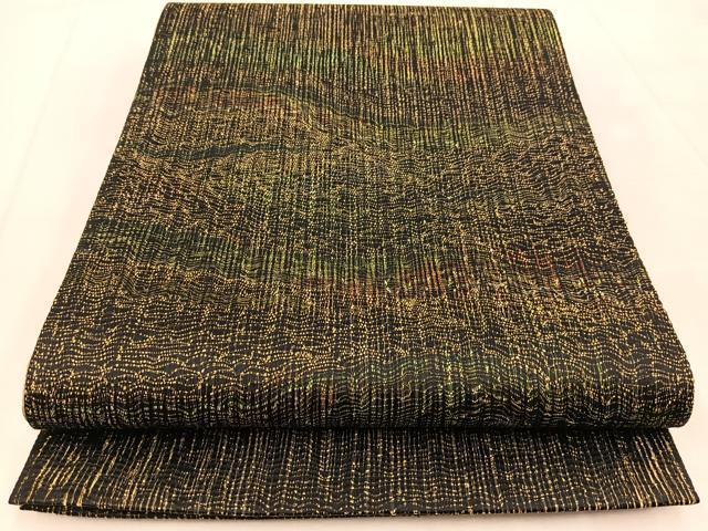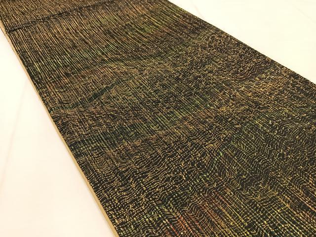 Heiwaya Kimono ◎ Full-length Fukuro Obi (Sash), Haze Pattern, Black Background, Gold Thread, Pure Silk, Excellent Item, BAAU9619yc