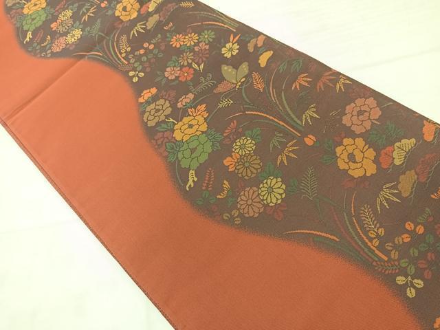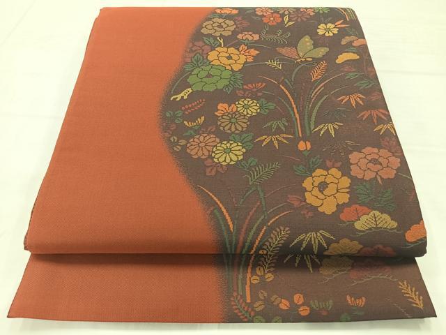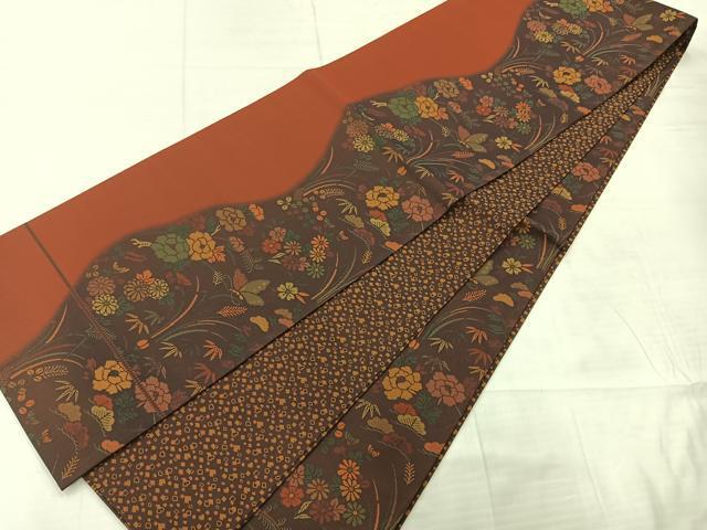 Heiwaya Kimono ◎ Kyoto's prestigious Hishiya Rokuemon double-sided full-length obi with dancing butterfly and flower motif, with hem, pure silk, excellent quality, AABC8887uk