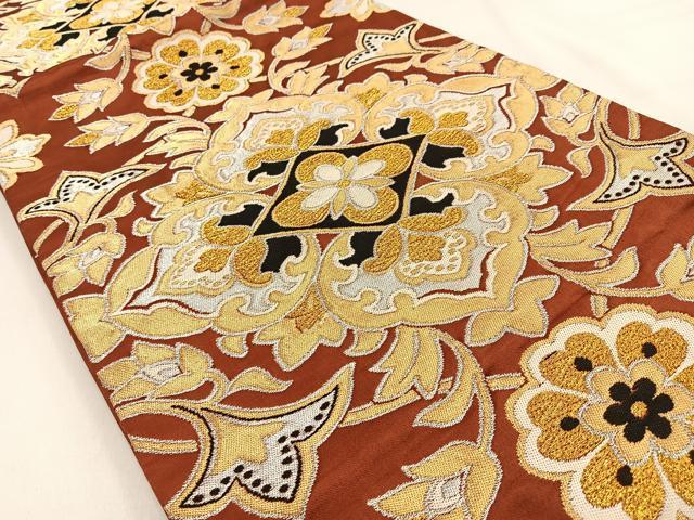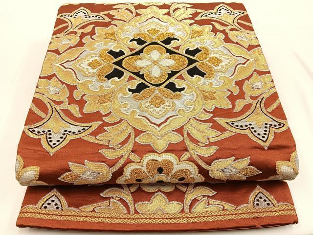 Heiwaya Kimono ◎ Nishijin Donsu Six-Pass Pattern Obi with Hosohana Pattern, Gold and Silver Thread, Pure Silk, Excellent Item BAAW0182hj
