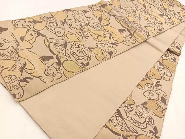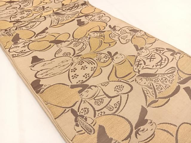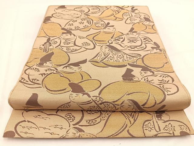 Heiwaya Kimono ◎ Nishijin Hattori Orimono Six-Piece Pattern Obi, Amber Brocade, Plant-Dyed, Thirty-Six Immortal Poets, Gold Thread, Pure Silk, Excellent Item BAAV7787yc