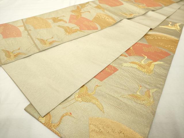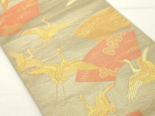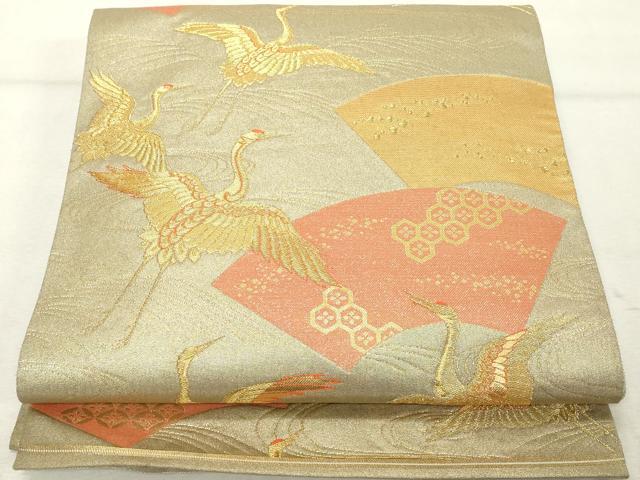 Heiwaya Kimono ◎ Nishijin Komori Textile Co., Ltd. Six-panel patterned obi sash, paper fan and flying crane motif, gold thread, pure silk, exquisite item DABE7848cd