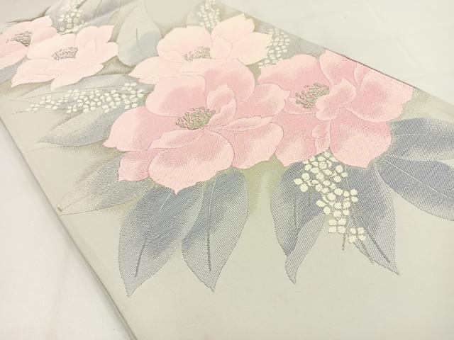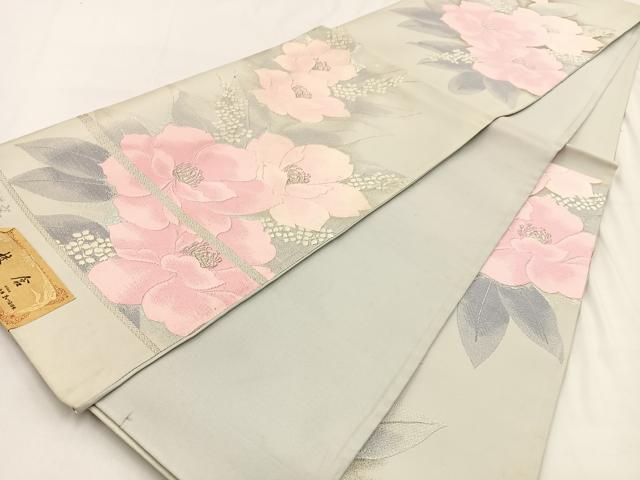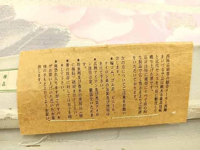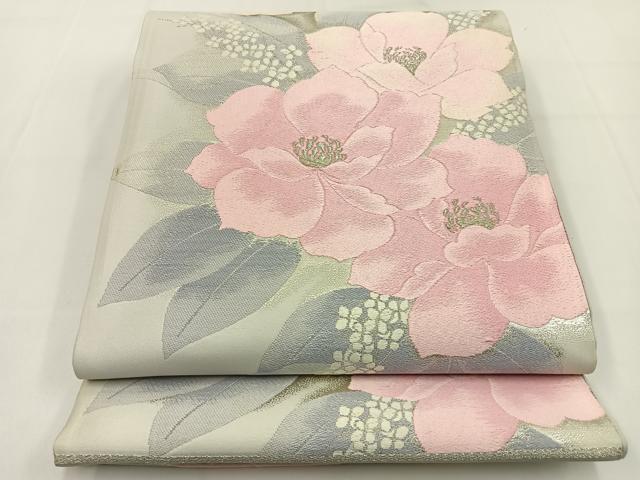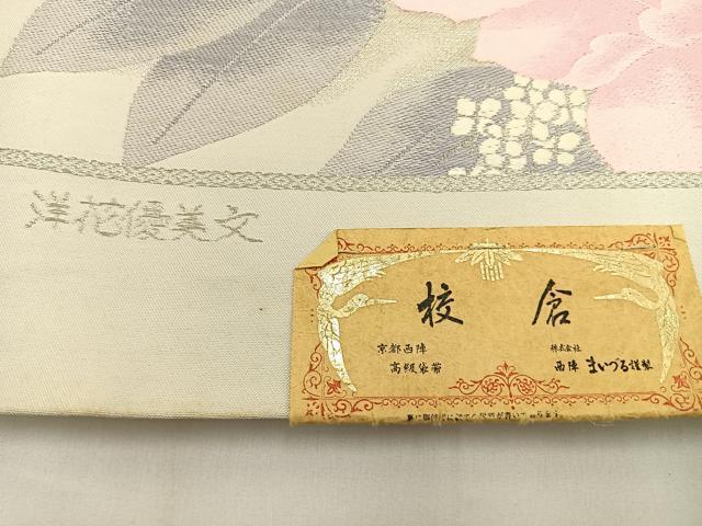 Heiwaya Kimono ◎ Nishijin Maizuru-made six-pass pattern obi, Karaori weave, elegant Western floral design, silver thread, certificate included, pure silk, exquisite item, BAAV2880hj
