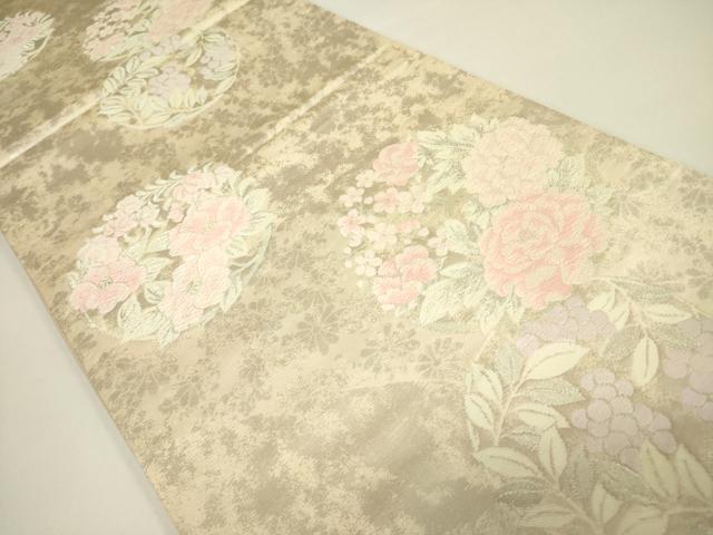 Heiwaya Kimono ◎ Nishijin Six-Pass Pattern Obi, Karaori, Grape and Peony Designs, Gold and Silver Thread, Pure Silk, Excellent Quality, DAAX1750op