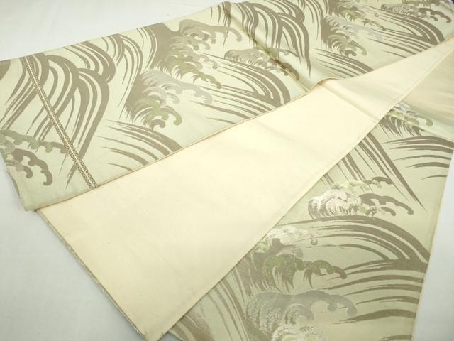 Heiwaya Kimono ◎ Nishijin six-pass pattern obi with standing wave pattern, silver thread, pure silk, exquisite item DABA3085qa