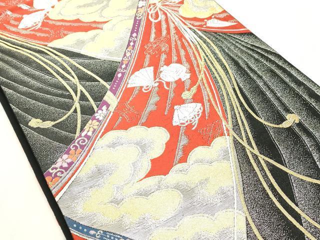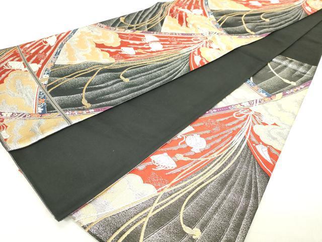 Heiwaya Kimono ◎ Nishijin's prestigious Izukura weavers carefully select this six-pass obi (sash), featuring a Chinese weave, a curtain and a "hoju" motif, black background, gold and silver threads, and pure silk. This exquisite item is DAAX5166cd.