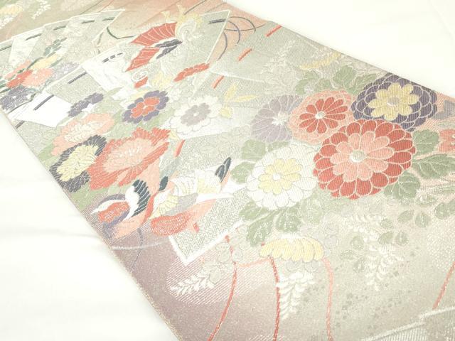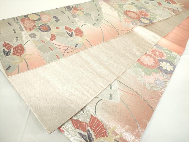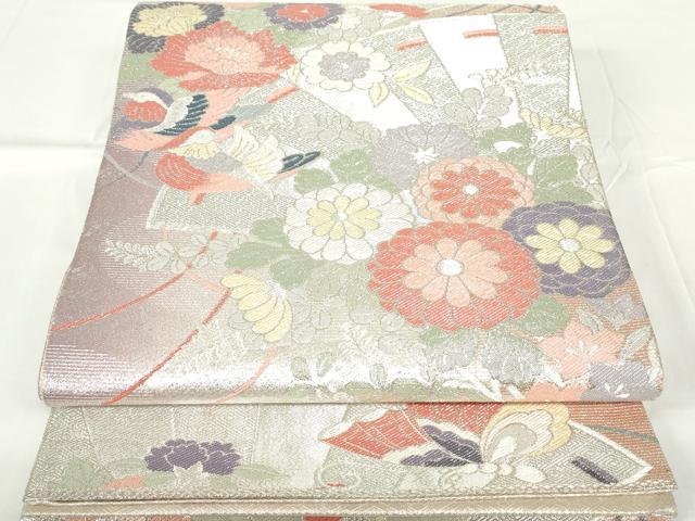 Heiwaya Kimono ◎ Saga Nishiki Six-Piece Pattern Obi with Cypress Fan and Butterfly Pattern, Gold and Silver Thread, Pure Silk, Excellent Quality, DAAZ5532ea