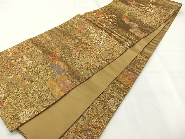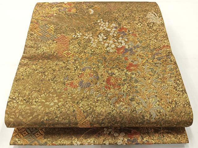 Heiwaya Kimono ◎ Six-panel patterned obi, "Beautiful Longing," floral pattern, gold thread, pure silk, exquisite item, AABH8724uk