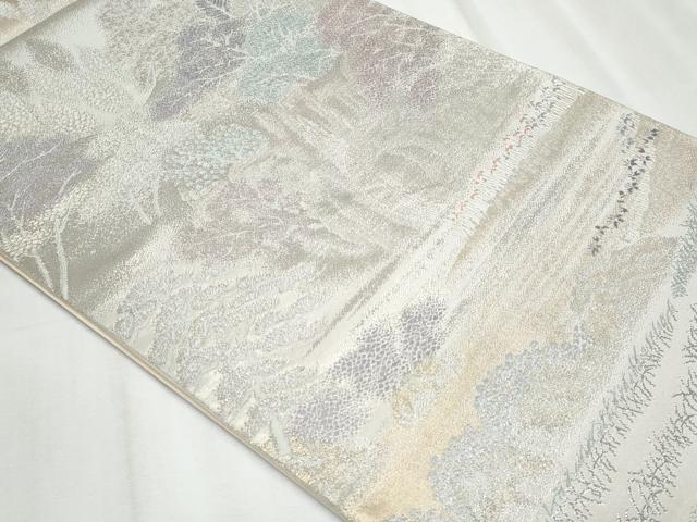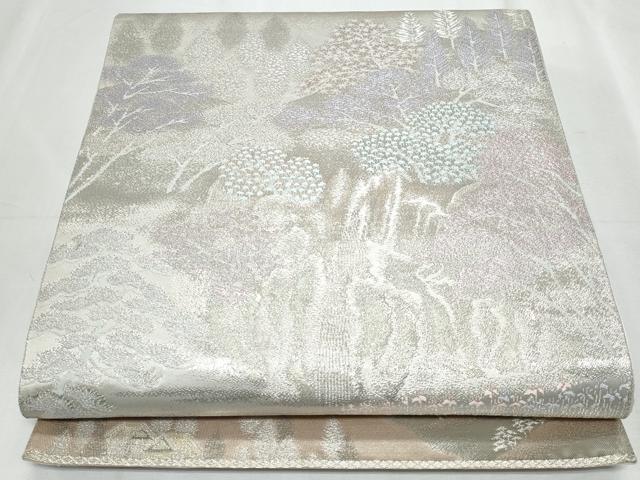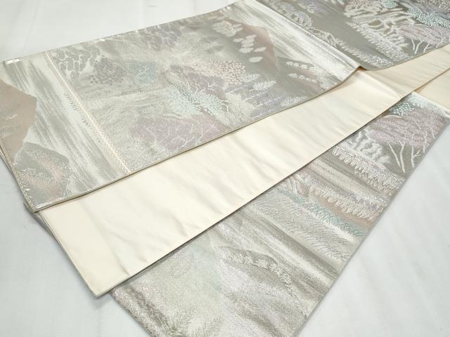 Heiwaya Kimono ◎ Six-panel patterned obi sash, distant mountain and forest motif, gold and silver thread, pure silk, exquisite item, CABF1057fb