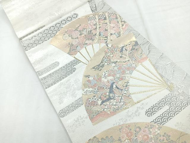 Heiwaya Kimono ◎ Six-panel patterned obi sash, featuring a design of the Thirty-Six Immortal Poets on a fan motif, platinum foil, pure silk, exquisite item, CABE5913nb