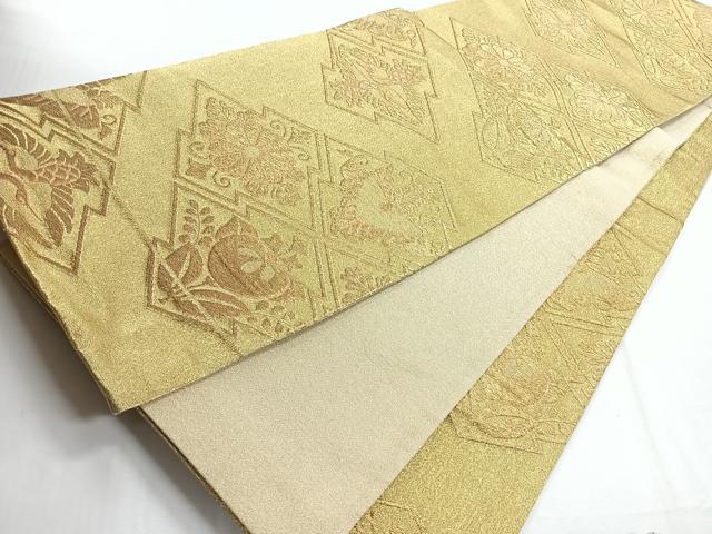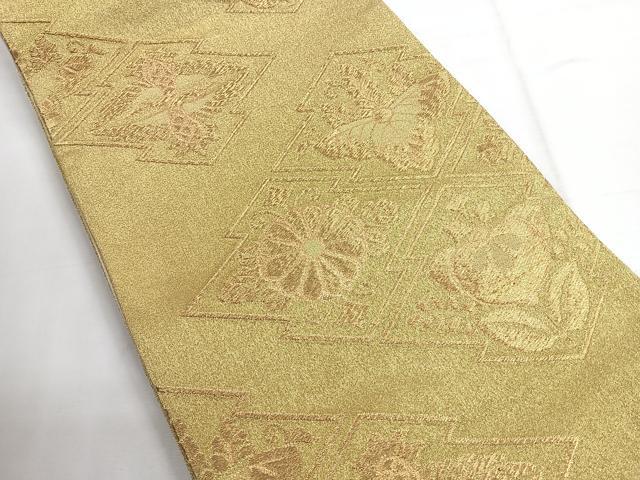 Heiwaya Kimono ◎ Six-panel patterned obi sash, pine bark diamond pattern with flowers and birds, gold thread, pure silk, exquisite item, CABE5911nb