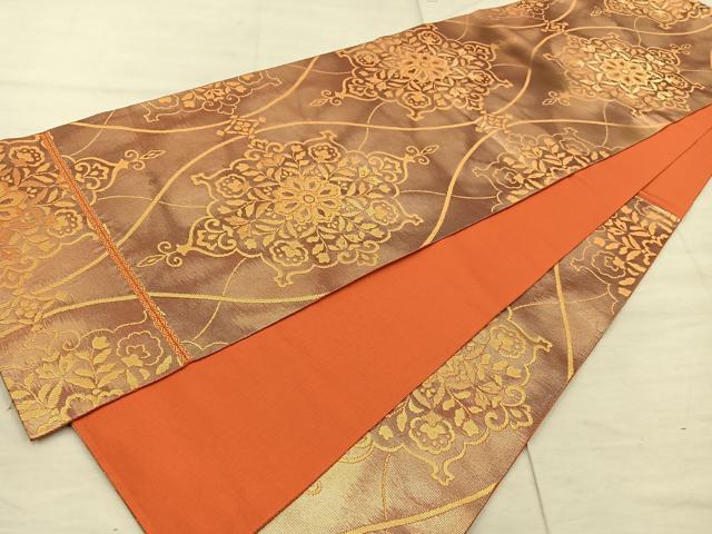 Heiwaya Kimono ◎ Six-panel patterned obi sash, Tatewaku Shosoin floral pattern, gold thread, pure silk, exquisite item BAAX4846mz