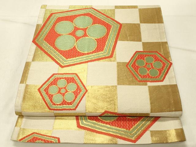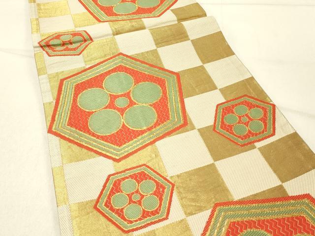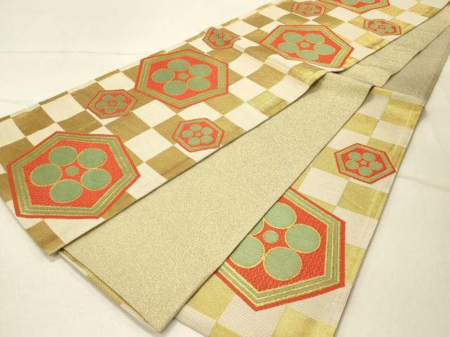 Heiwaya Kimono ◎ Six-panel patterned obi sash, tortoise shell and flower design, gold thread, pure silk, exquisite item, DABF6552qp