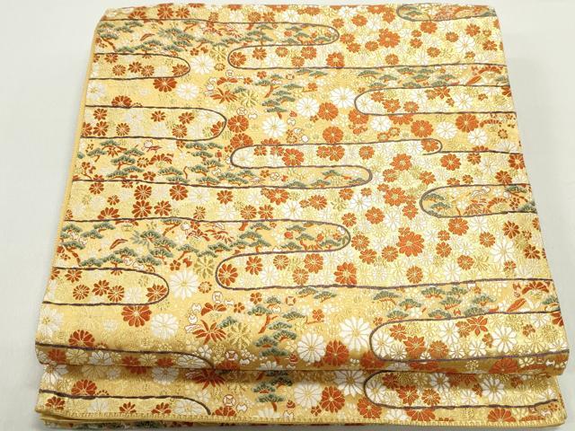 Heiwaya Kimono ◎ Six-panel patterned obi, Tang weave, Kasumi Hanamatsu pattern, gold thread, pure silk, exquisite item DABE8712qa
